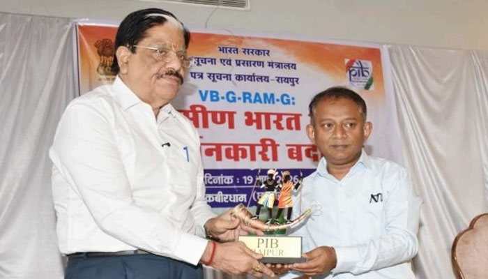 VBG-RAM-G : भारत सरकार के सूचना एवं प्रसारण मंत्रालय के अधीन पत्र सूचना कार्यालय (PIB), रायपुर द्वारा कल कवर्धा में एक दिवसीय वार्तालाप (मीडिया कार्यशाला ) का आयोजन किया गया । इस कार्यशाला का मुख्य विषय विबी-जी-राम-जी (VBG-RAM-G) ग्रामीण भारत का परिवर्तनकारी बदलाव था । कार्यक्रम में मुख्य अतिथि के रूप में छत्तीसगढ़ राज्य नीति आयोग के उपाध्यक्ष गणेश शंकर मिश्रा और विशिष्ट अतिथि के रूप में कवर्धा जिला कलेक्टर गोपाल वर्मा उपस्थित रहे।