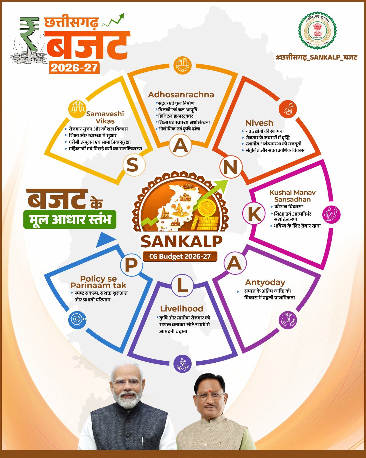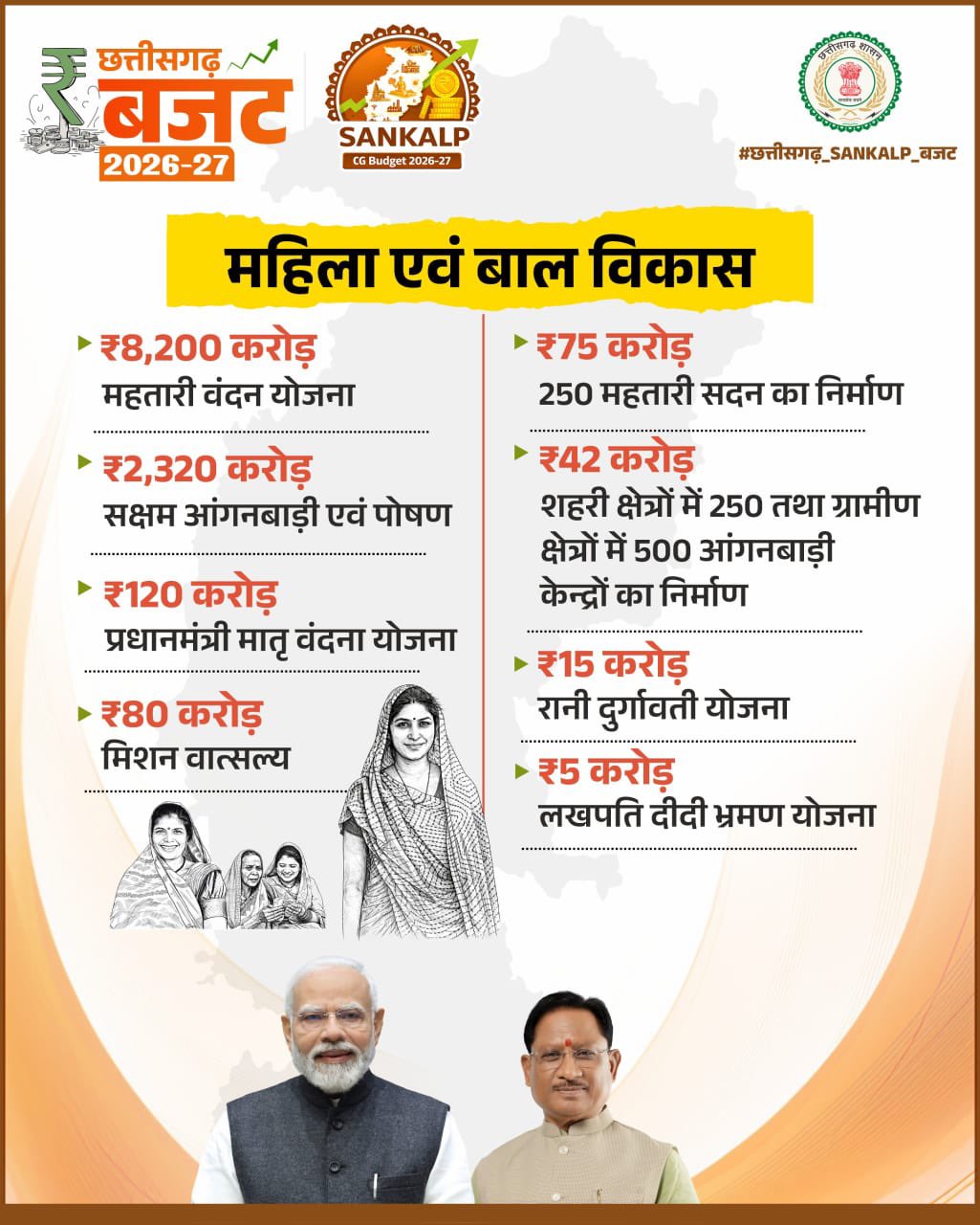 CM साय ने कहा कि हमारी सरकार मिशन मोड में काम करने में विश्वास रखती है। इसके लिए हमने पांच मुख्यमंत्री मिशन बनाए हैं। मुख्यमंत्री अधोसंरचना मिशन, मुख्यमंत्री AI मिशन, मुख्यमंत्री पर्यटन विकास मिशन, मुख्यमंत्री स्टार्टअप मिशन और मुख्यमंत्री खेल उत्कर्ष मिशन से प्रदेश के विकास को नई दिशा, नई धार और नई रफ्तार दी जाएगी। मैं इस शानदार बजट के लिए पूरे प्रदेश को हार्दिक बधाई देता हूं। (Chhattisgarh Budget 2026)