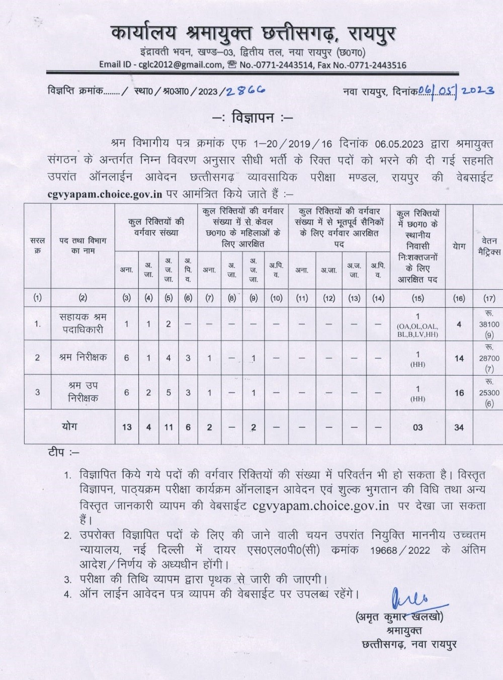 Chhattisgarh Government Job: छत्तीसगढ़ सरकार द्वारा सरकारी नौकरी में भर्ती का सिलसिला लगातार जारी है। इस बीच सरकार ने सहायक श्रम पदाधिकारी, श्रम निरीक्षक और श्रम उप निरीक्षक 34 पदों के लिए विज्ञापन जारी किया गया है। आवेदन करने के विस्तृत नियम और निर्देश व्यापमं की वेबसाइट पर उपलब्ध हैं।