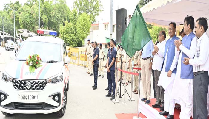 मुख्यमंत्री साय ने सड़क सुरक्षा को दी प्राथमिकता: परिवहन सुरक्षा बेड़े में 48 वाहनों को दिखाई हरी झंडी