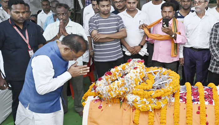 Naxal attacks in Chhattisgarh : मुख्यमंत्री विष्णुदेव साय ने आज सुकमा जिले के कोंटा में नक्सलियों द्वारा किए गए आईईडी विस्फोट में शहीद एएसपी श्री आकाश राव गिरपुंजे के राजधानी रायपुर स्थित निवास पहुंचकर उनके पार्थिव देह पर पुष्पचक्र अर्पित कर उन्हें श्रद्धांजलि दी।