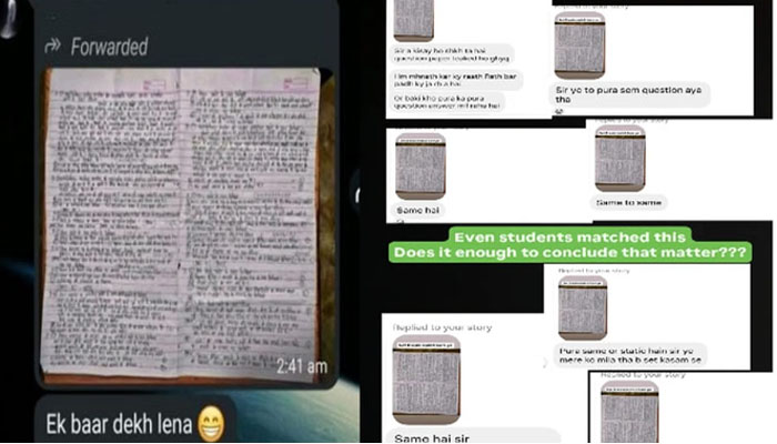 अब दावा किया जा रहा है कि इन दोनों पन्नों में लिखे गए सवाल अगले दिन हुई हिंदी परीक्षा के प्रश्नपत्र से काफी हद तक मिलते-जुलते हैं। यहां तक कि कई सवालों का क्रम भी वही बताया जा रहा है। इस पूरे मामले को सबसे पहले सोशल मीडिया पर NSUI के छात्र नेता Puneshwar Lahare ने अपने पेज पर पोस्ट कर सामने लाया।