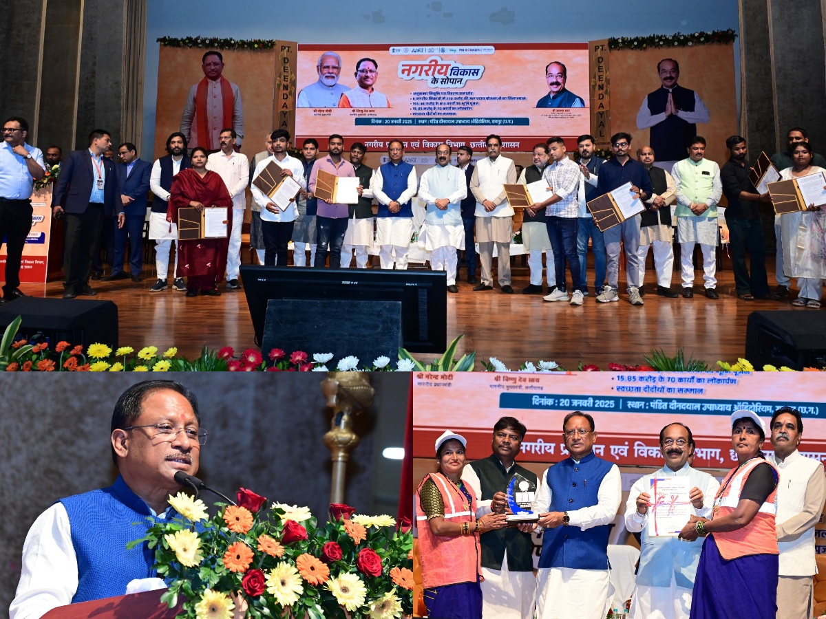 मुख्यमंत्री ने कहा कि विभिन्न नगरीय निकायों में 155 करोड़ 38 लाख रुपए के 813 कार्यों का शिलान्यास और 15 करोड़ 25 लाख रुपए के 70 कार्यों का लोकार्पण अभी यहां पर हुआ है। 6 नगरीय निकायों तखतपुर, रतनपुर, भानुप्रतापुर, छुरिया, मल्हार ओर खोंगापानी में अमृत मिशन-2.0 के तहत 270 करोड़ रुपए की लागत से बनने वाले जल प्रदाय योजनाओं का शिलान्यास भी हम लोगों ने यहां पर किया है। इन नगरीय निकायों में 20 हजार 511 निनल कनेक्शन दिए जाएंगे। इससे हर घर तक स्वच्छ पेयजल पहुंचाने का प्रधानमंत्री नरेंद्र मोदी का संकल्प मूर्तरूप लेने वाला है। स्वच्छ भारत अभियान में सभी की सहभागिता से नगरीय क्षेत्रों में बड़ी सफलता मिल रही है। स्वच्छता को प्रोत्साहित करने के लिए हम लोग समय-समय पर उत्कृष्ट कार्य करने वालों को सम्मानित भी कर रहे हैं। ऐसे ही मिशन क्लीन सिटी के अंतर्गत क्लीन टायलेट कैम्पेन में उत्कृष्ट कार्य करने वाले प्रदेश के 14 नगरीय निकायों को आज हम लोग सम्मानित कर रहे हैं। अंबिकापुर, छुरा, छुरिया, डोंगरगढ़, कोरबा, महासमुंद, रायपुर, राजनांदगांव, बिलासपुर, मंदिर हसौद और चंदखुरी आदि नगरीय निकायों को आज पुरस्कृत किया जा रहा है। इन्हें सम्मानित करके हम खुद भी गौरवान्वित महसूस कर रहे हैं। (CM Sai on Development)
