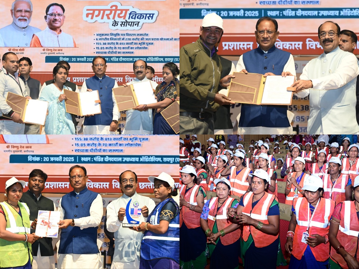 मुख्यमंत्री ने कहा कि शहरों में स्वच्छता और डोर-टू-डोर कचरा कलेक्शन करने में स्वच्छता दीदियों का बड़ा योगदान है। इनके लगन और मेहतन से ही स्वच्छता मिशन सफल हो पा रहा है। स्वच्छता दीदियों का सम्मान, इनके योगदान को प्रोत्साहन देता है। हम इनका सम्मान करके खुद भी सम्मानित महसूस कर रहे हैं। राज्य के नगरीय निकायों में इस समय स्वच्छ भारत मिशन के अंतर्गत 9 हजार से अधिक स्वच्छता दीदी कार्यरत हैं। इन्हें 7200 रुपये मानदेय दिया जाता है। मुझे यह बताते हुए अत्यंत खुशी हो रही है कि स्वच्छता दीदियों के मानदेय में आज 800 रुपए की बढ़ोत्तरी की जा रही है। अब स्वच्छता दीदियों को हर महीने 8 हजार रुपए मानदेय मिलेगा। मुख्यमंत्री ने कहा कि हमारे प्रधानमंत्री नरेंद्र मोदी का सपना है कि कोई भी भारतीय खुले आसमान के नीचे नहीं सोएगा। हर नागरिक का पक्का मकान होगा। मोदी की गारंटी के मुताबिक छत्तीसगढ़ में 13 दिसंबर को हमारी सरकार बनते ही, हमने 14 दिसंबर 2023 को पहले कैबिनेट की बैठक में पहला निर्णय 18 लाख प्रधानमंत्री आवास की मंजूरी का लिया। (CM Sai on Development)