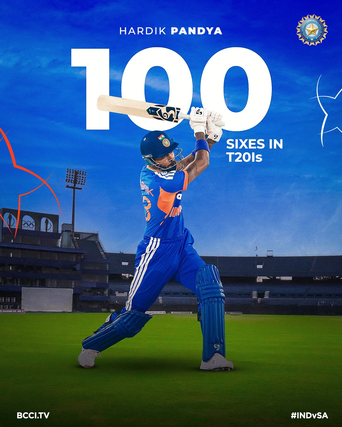 India South Africa T20: ओडिशा के कटक के बाराबाती स्टेडियम में खेले गए पहले T-20 मैच में भारत ने साउथ अफ्रीका को 101 रन से हराकर 5 मैचों की सीरीज में 1-0 की बढ़त बना ली। दक्षिण अफ्रीका ने टॉस जीतकर पहले गेंदबाजी चुनी, लेकिन यह फैसला टीम को भारी पड़ गया। टीम इंडिया ने निर्धारित 20 ओवर में 6 विकेट खोकर 175 रन बनाए। सबसे बड़ी पारी हार्दिक पंड्या के बल्ले से निकली। उन्होंने सिर्फ 28 गेंदों पर 59 रन कूटे, जिसमें 6 चौके और 4 छक्के शामिल रहे। इसी मैच में पंड्या ने T-20 इंटरनेशनल में अपने 100 छक्के भी पूरे कर लिए।