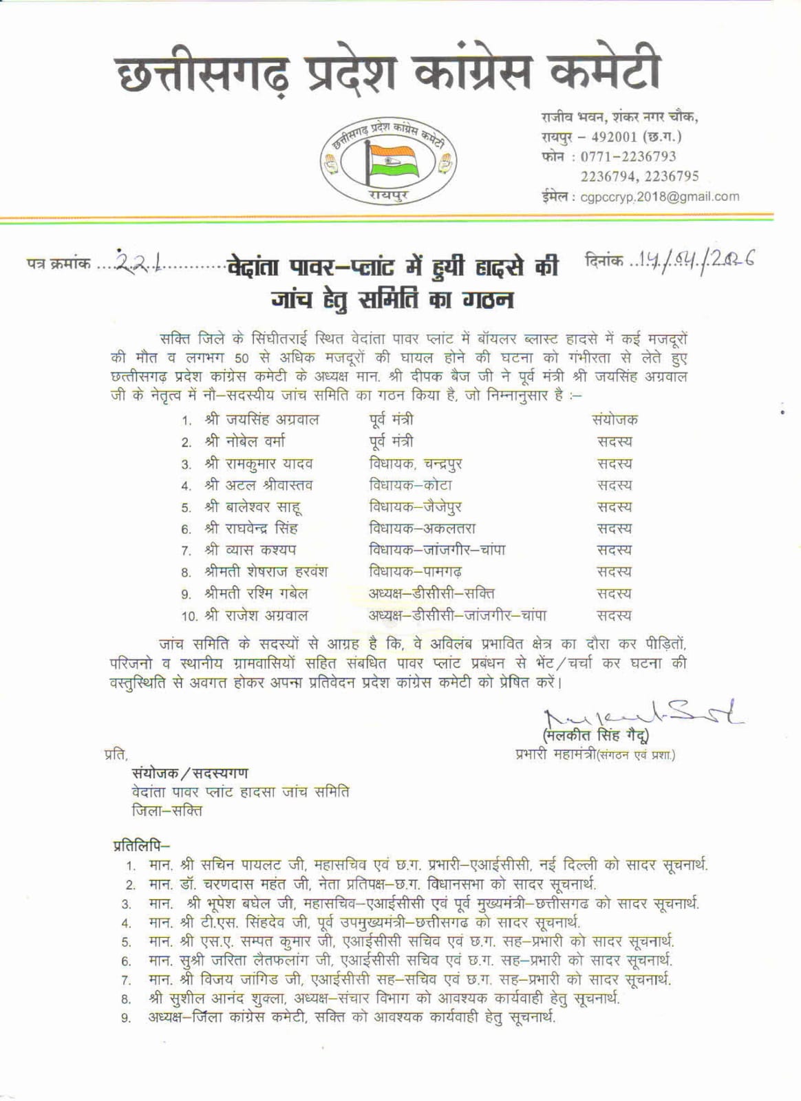 बैज ने मामले की जांच के लिए 10 सदस्यीय समिति गठित की है, जिसकी अध्यक्षता पूर्व मंत्री जयसिंह अग्रवाल को सौंपी गई है। यह समिति मौके पर जाकर पीड़ित परिवारों, मजदूरों और स्थानीय लोगों से बातचीत कर विस्तृत रिपोर्ट तैयार करेगी। इसके अलावा पूर्व मंत्री नंदकुमार वर्मा समेत कई विधायक और संगठन के पदाधिकारी सदस्य बनाए गए हैं। समिति में विधायक रामकुमार यादव (चंद्रपुर), अटल श्रीवास्तव (कोटा), बावनलाल साहू (बेमेतरा), राघवेंद्र सिंह (अकलतरा), व्यास कश्यप (जांजगीर-चांपा), शेषराज हरबंश (पामगढ़) और जिला कांग्रेस अध्यक्ष शामिल हैं। पूर्व डिप्टी CM टीएस सिंहदेव ने भी इस हादसे को प्रशासनिक लापरवाही का परिणाम बताते हुए सवाल उठाए हैं। उन्होंने कहा कि प्लांट में एंबुलेंस तक उपलब्ध नहीं थी, जो गंभीर सुरक्षा चूक को दर्शाता है।