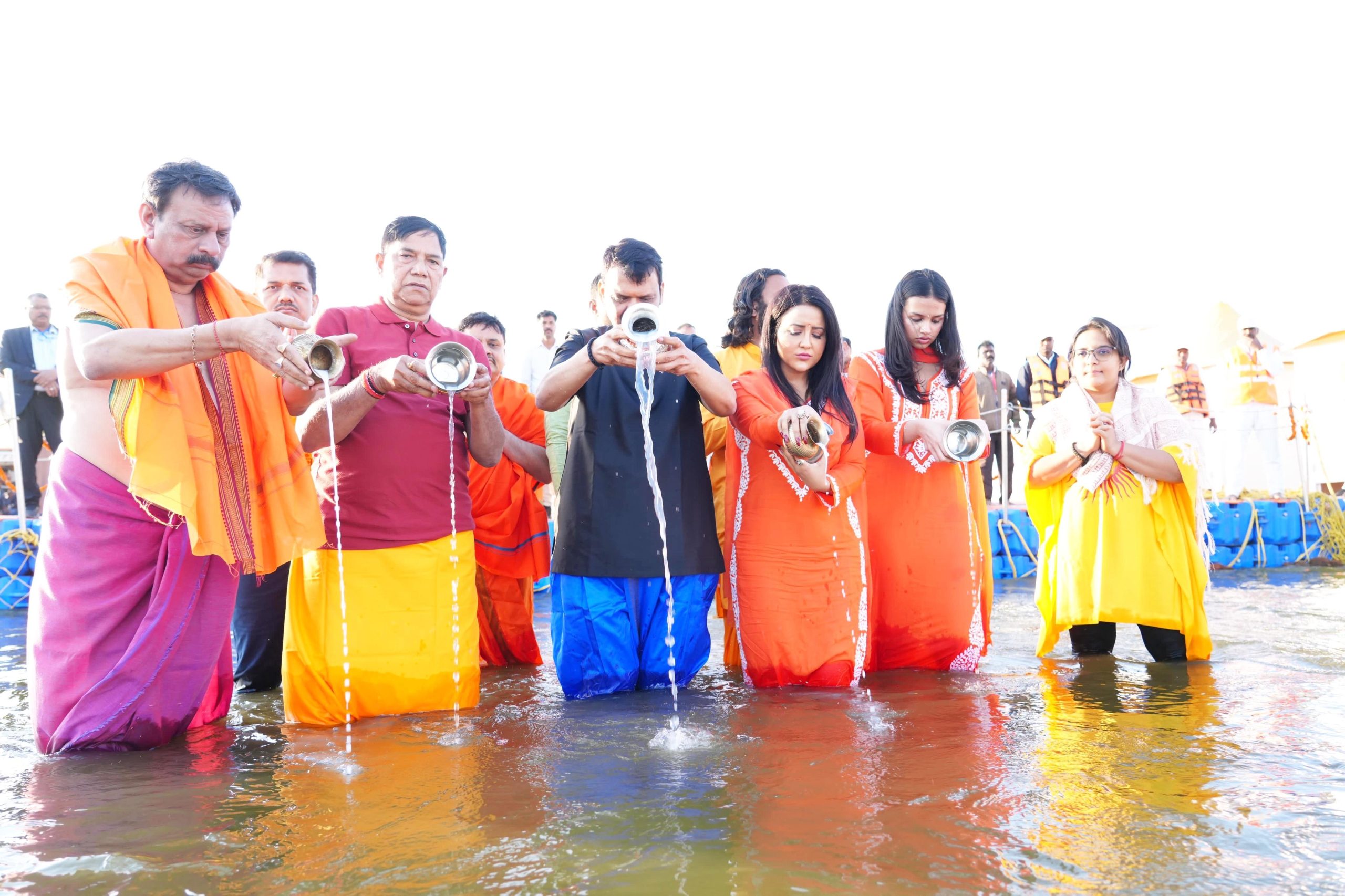 34वें दिन भी महाकुंभ में पवित्र स्नान करने के लिए श्रद्धालुओं की भारी भीड़ उमड़ रही है। महाकुंभ के DIG वैभव कृष्ण ने कहा कि 14 फरवरी को महाकुंभ में स्नान करने वालों की संख्या 50 करोड़ को पार कर गई है। बहुत अच्छे तरीके से लोगों को स्नान कराया गया है। आगे भी जब तक श्रद्धालु आते रहेंगे। सभी को सुरक्षा के साथ सकुशल स्नान कराया जाता रहेगा। इधर, महाराष्ट्र के मुख्यमंत्री देवेंद्र फडणवीस ने अपने परिवार के साथ त्रिवेणी संगम में पवित्र स्नान किया। इस दौरान CM फडणवीस ने कहा कि यह आस्था का सबसे बड़ा कुंभ है और हर सनातनी हिंदू पवित्र डुबकी लगाना चाहता है। मुझे बहुत खुशी है कि मुझे अपने परिवार के साथ महाकुंभ में जाने और पवित्र डुबकी लगाने का अवसर मिला। (Prayagraj Maha Kumbh Record)