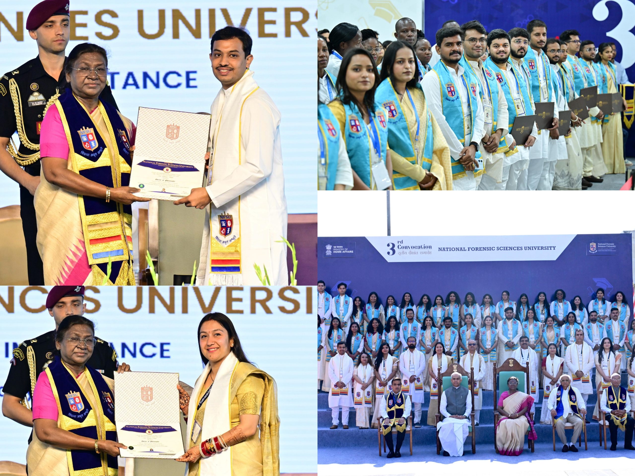 President Draupadi Murmu: राष्ट्रपति द्रौपदी मुर्मू गुजरात के गांधीनगर में राष्ट्रीय फोरेंसिक विज्ञान विश्वविद्यालय के दीक्षांत समारोह में शामिल हुईं। इस दौरान उन्होंने कहा कि विरासत और विकास के संगम के द्वारा हम एक ऐसे विकसित भारत का निर्माण कर रहे हैं जो न्याय पर आधारित होगा। कोई भी न्याय व्यवस्था तभी मजबूत मानी जाएगी जब वह सही अर्थों में समावेशी हो। उन्होंने छात्रों से कहा कि उनका लक्ष्य समाज के सभी वर्गों, विशेषरूप से कमजोर और वंचित वर्गों को फोरेंसिक साक्ष्य के आधार पर निष्पक्ष और त्वरित न्याय प्रदान करना होना चाहिए। उन्होंने छात्रों से देश के सुशासन में योगदान देने का आग्रह किया।