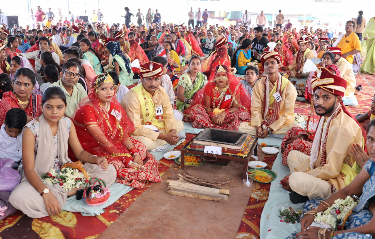 Samuhik Kanya Vivah Yojana: रायगढ़ में महिला और बाल विकास विभाग की ओर से पटेलपाली स्थित कृषि उपज मंडी परिसर में मुख्यमंत्री सामूहिक कन्या विवाह योजना अंतर्गत भव्य सामूहिक विवाह समारोह का आयोजन किया गया। इस अवसर पर कुल 58 जोड़े परिणय सूत्र में बंधे। कार्यक्रम में प्रदेश के वित्त मंत्री ओपी चौधरी वर्चुअल माध्यम से शामिल हुए। वित्त मंत्री चौधरी ने नवविवाहित जोड़ों को उनके नए जीवन के लिए शुभकामनाएं दी और प्रत्येक जोड़े को 5-5 हजार रुपए की आर्थिक सहायता देने की घोषणा की। उन्होंने कार्यक्रम में सहयोग देने के लिए रायगढ़ के गायत्री परिवार शाखा का भी आभार व्यक्त किया।