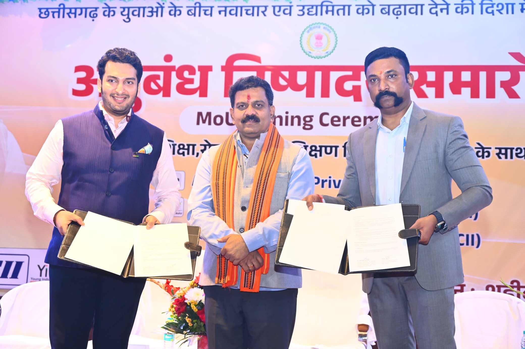 Vijay Sharma on Youth: छत्तीसगढ़ में युवाओं को रोजगार और कौशल विकास के क्षेत्र में नई संभावनाएं प्रदान करने के उद्देश्य से रायपुर के शहीद स्मारक ऑडिटोरियम में डिप्टी CM विजय शर्मा और वन मंत्री केदार कश्यप की उपस्थिति में कौशल विकास, तकनीकी शिक्षा और रोजगार विभाग के सचिव एस भारतीदासन ने CSRBox फाउंडेशन, CII यंग इंडियंस और अपनाटेक प्राइवेट लिमिटेड के साथ MoU पर हस्ताक्षर किए। इस अवसर पर संचालक तकनीकी शिक्षा और रोजगार ऋतुराज रघुवंशी, अपनाटेक प्राइवेट लिमिटेड के वाइस प्रेसिडेंट डॉ प्रीतसिंह, CSRBox फाउंडेशन के वाइस प्रेसिडेंट मनो विराज सिंह, वाईस प्रेजिडेंट और CII यंग इंडियंस के चेयर पर्सन गौरव अग्रवाल के अलावा अन्य अधिकारी कर्मचारी और विभिन्न संस्थान के छात्र-छात्राएं उपस्थित थे।