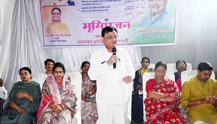 उद्योग मंत्री लखनलाल देवांगन व महापौर संजूदेवी राजपूत ने सीएसईबी चौक में 32 लाख 30 हजार रूपए से बनने वाले 02 प्रतीक्षा शेड निर्माण कार्य का किया भूमिपूजन