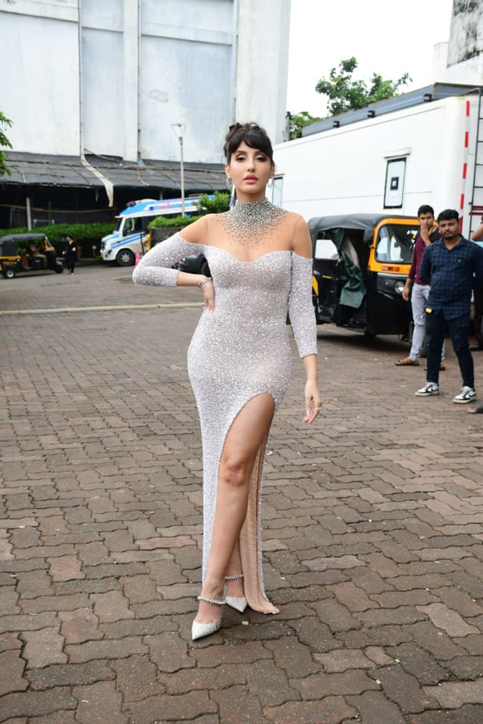 इस मौके पर नोरा ने सबको अपनी खूबसूरती से चौंका दिया। वे थाई-हाई स्लिट वाले पर्ल व्हाइट गाउन में बेहद खूबसूरत नजर आ रही थीं। इसके साथ उन्होंने मैचिंग नेकलेस पेयर किया